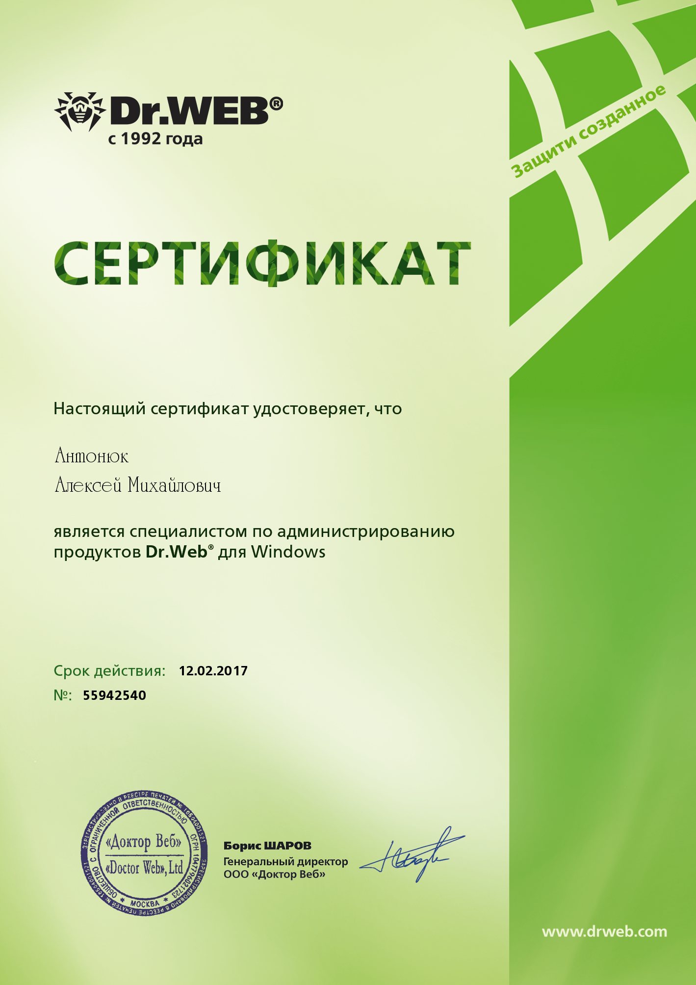 Users DWCERT-030-12DWCERT-030-12 - Dr.Web для Android. Сертифицированный пользователь Dr.Web для Android.